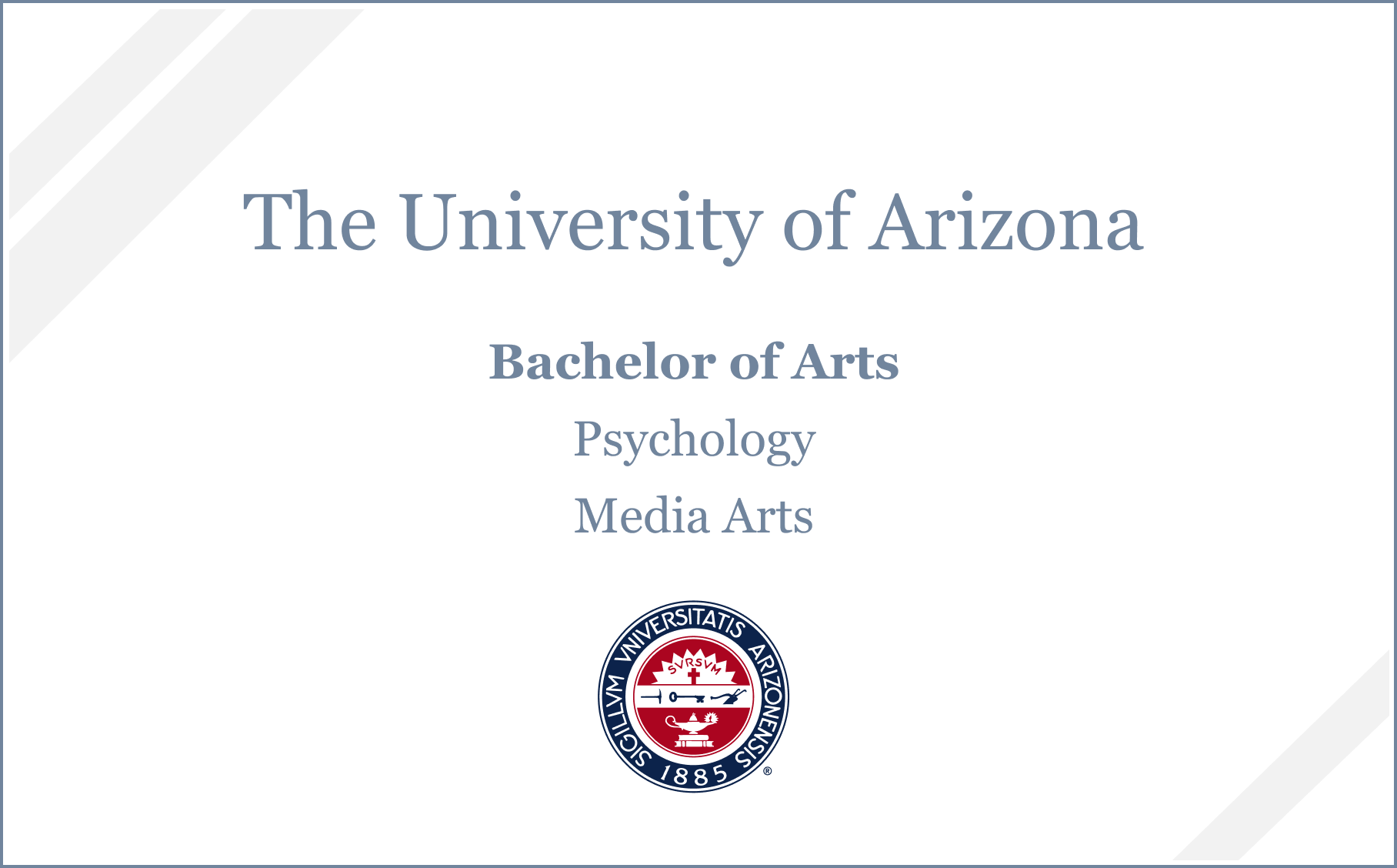 Growing up in Shaker Heights, Ohio, I eventually made my way to Los Angeles when I was 15. During my high-school years, I discovered my passion for Psychology, which led me to take an Advanced Placement class the following year. In college, I pursued a double major in Psychology and Media Arts, with the goal of applying scientific principles to create innovative media.